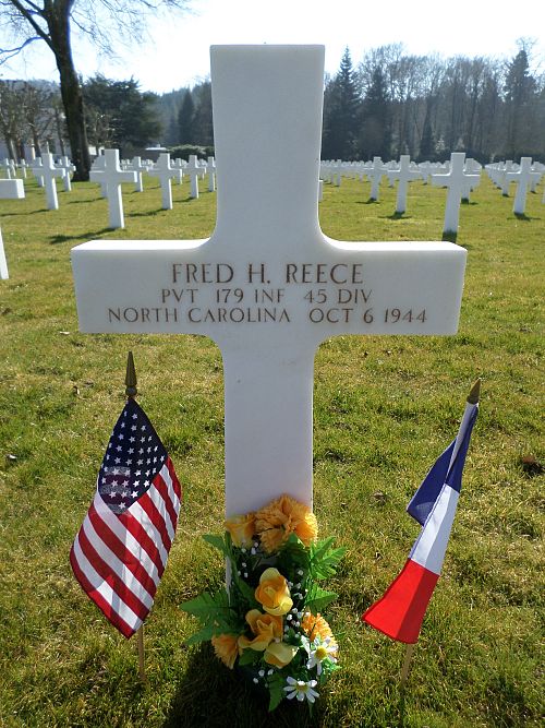 Pvt Fred H. Reece worked on a farm before he enlisted in Camp Croft, South Carolina on 17 September 1942.He was killed in the German counterattack conducted by the 111th Panzer Grenadiers of the 11th Panzer Division through the Mortagne Forest and Hill 484 to the west of Grandvillers.
