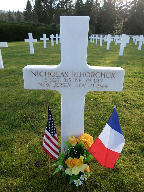 S/Sgt Nicholas Rehorchuk attended high school for one year and was employed at the Paterson Window Cleaning Company before he enlisted in Newark, New Jersey on 23 November 1942.He was killed by artillery shell fragments in his stomach.
