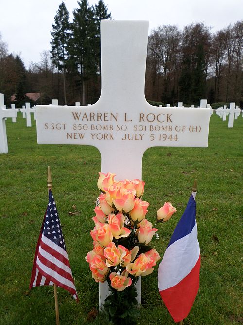 S/Sgt Warren L. Rock enlisted in New York City, New York on 22 February 1943.The aircraft was shot down by an Me-110 night fighter approximately 35 miles south of Paris on the morning of 5 July. It exploded and crashed at 0200hrs at a spot known locally as Les Trois Mares in Lagny-Le-Sec, France.