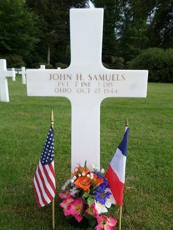 Pvt John H. Samuels attended high school for two years and was employed by a WPA project.He enlisted at Fort Thomas, Kentucky on 15 January 1942 and was sent overseas in October 1942.