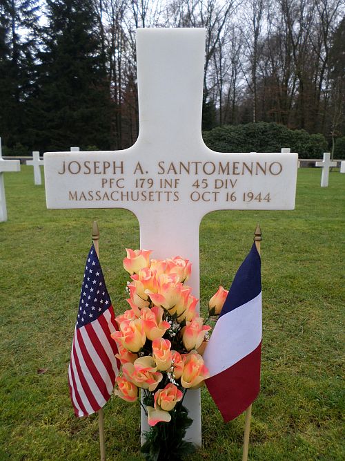 Pfc Joseph A. Santomenno enlisted in Fort Devens, Massachusetts on 28 April 1943.Source of information: Peter Schouteten, www.abmc.gov, www.wwiimemorial.com, www.archives.gov – WWII Enlistment Record, www.ancestry.com - Headstone and Interment Record / 1930 Census, http://www.45thdivision.org