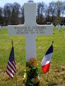 Sgt William R. Scheibel was employed at General Motors Truck Corporation.He is remembered at the Lakeview Cemetery in Ludington, Mason County, Michigan.