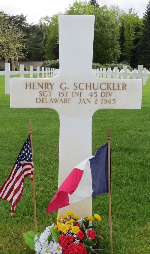 Source of information: Peter Schouteten, www.abmc.gov, www.wwiimemorial.com, www.ancestry.com - Headstone and Interment Record / U.S. WWII Draft Cards Young Men / Speakman Family Tree / 1930 Census, http://www.45thdivision.org, www.findagrave.com – Russ Pickett, www.newspapers.com – The Morning News Delaware 23 January 1945