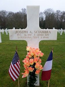 Pfc Joseph A. Sciambra Jr. enlisted at Fort Lauderdale, Florida on 7 February 1942.He was first buried at the Temporary American Military Cemetery of Champigneul, France.