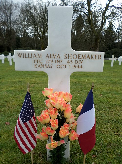 Pfc William A. Shoemaker enlisted at Fort Leavenworth, Kansas, on 4 February 1943.Source of information: Peter Schouteten, Terry Hirsch, www.abmc.gov, www.wwiimemorial.com – Gary Shoemaker, www.archives.gov – WWII Enlistment Record, www.ancestry.com - Headstone and Interment Record, http://www.45thdivision.org, WWII Draft Card