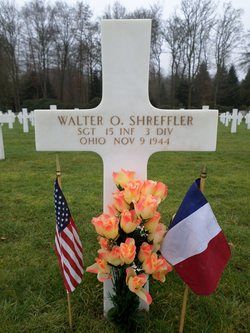 Sgt Walter O. Shreffler attended high school for three years and was employed at the Erie Proving Grounds before he enlisted in Toledo, Ohio on 11 June 1943.In October 1944, Sgt Shreffler was wounded by artillery shell fragments in his neck and arm. He was discharged from the hospital in November 1944.