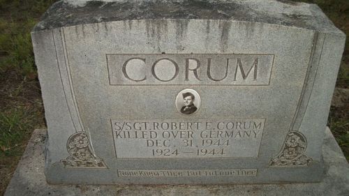 S/Sgt Robert E. Corum is remembered with a memorial marker at Evergreen Cemetery in Ballinger, Runnels County, Texas.