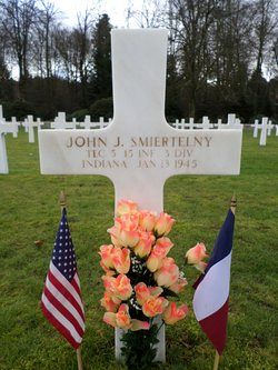 T/5 John J. Smiertelny attended Michigan High School and was employed by the Pullman Standard Car Manufacturing Company before he enlisted on 16 February 1942.The exact date he was reported wounded in action and the location where he died, is not known.
