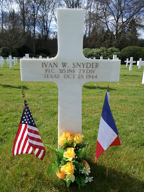 Pfc Ivan W. Snyder attended North Platte High School for four years and was a mechanic and repairman of motor vehicles.He enlisted in Houston, Texas on 17 November 1943.