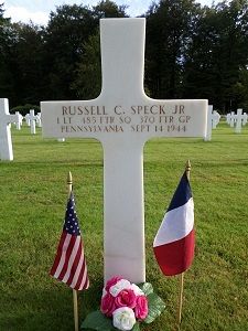 Russell C. Speck Jr. graduated from Olney High School and attended Drexel Institute, School of Engineering.He volunteered for the Air Corps of the Army of the United States in Philadelphia, Pennsylvania, on 18 April 1942 and was commissioned in May 1943.