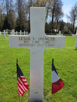 Pfc Leslie V. Spencer was employed by the Civilian Consumption Corp.From March 1944 to May 1944, he was hopitalized in Italy for wounds to his hand caused by machine gun fire.