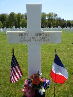 Pfc Riley L. Sproul graduated from Daykin High School in 1928 and attended Peru State Teachers College for one year. He was salesman employed by the Cudaly Packing Company.He enlisted on 31 August 1943 in Maywood, Illinois and was sent overseas in March 1944.