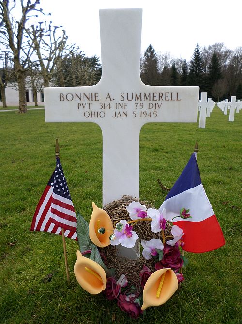 Pvt Bonnie A. Summerell was employed at the National Porcelain Products before he enlisted in Columbus, Ohio on 2 December 1943. He was sent overseas in August 1944.He was killed by artillery shell fragments in his stomach while he was evacuating wounded men from the front.