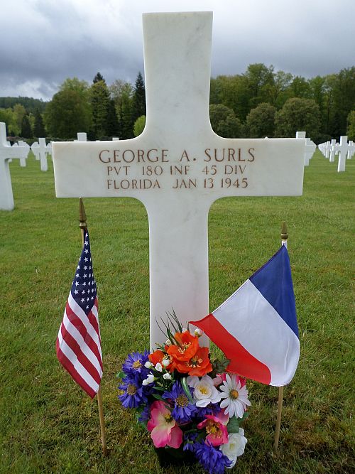 Pvt George A. Surls enlisted at Camp Blanding, Florida, on 18 September 1943.Source of information: Peter Schouteten, www.abmc.gov, www.wwiimemorial.com, www.archives.gov – WWII Enlistment Record, www.ancestry.com - Headstone and Interment Record, http://www.45thdivision.org