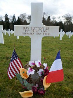 Pvt Ray Sutton worked on the family farm before he enlisted at Fort Logan, Colorado on 19 April 1944 and received his basic training at Camp Roberts, California.He was killed by artillery shell fragments in the arm and leg.