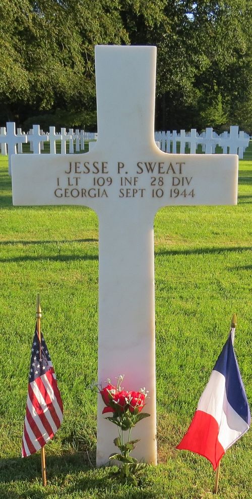 1st Lt Sweat was first buried at the Temporary American Military Cemetery in Solers, France.Source of information: Peter Schouteten, Raf Dyckmans, www.abmc.gov, www.wwiimemorial.com, www.ancestry.com - Headstone and Interment Record / Bennett Family Tree / U.S. WWII Draft Cards Young Men, www.findagrave.com, www.newspapers.com – The Atlanta Constitution 28 November 1944