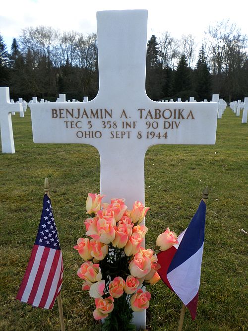 T/5 Benjamin A. Taboika enlisted in Cleveland, Ohio on 1 February 1941.He was first buried at the Temporary American Military Cemetery in Champigneul, France.
