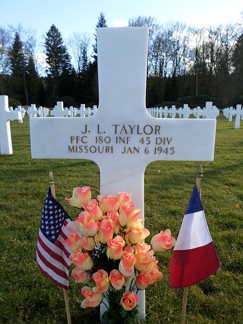 Pfc J. L. Taylor enlisted at Jefferson Barracks, Missouri on 28 April 1944.Source of information: Peter Schouteten, Terry Hirsch, www.abmc.gov, www.wwiimemorial.com, www.archives.gov – WWII Enlistment Record, www.ancestry.com - Headstone and Interment Record / 1940 Census, http://www.45thdivision.org, WWII Draft Card