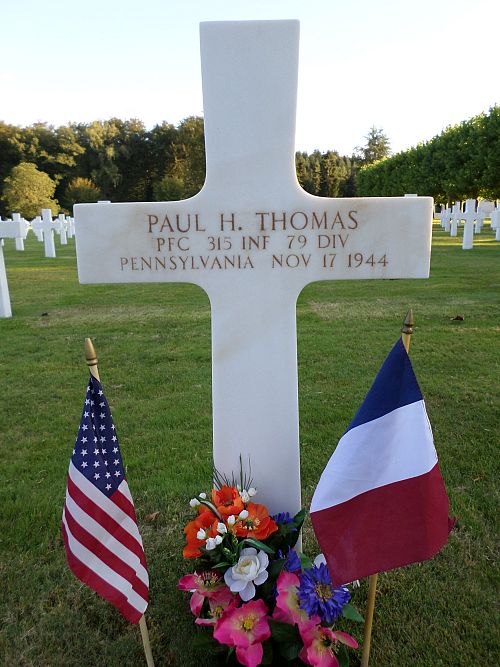 Pfc Paul H. Thomas graduated with the class of 1944 at Bradford High School before he enlisted in New Cumberland, Pennsylvania on 18 March 1944. He was sent overseas in September 1944.He was killed by artillery shell fragments.