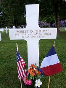 Pvt Robert D. Thomas attended high school for four years and was a mechanic before he enlisted in Houston, Texas on 28 September 1943.He was first buried at the Temporary American Military Cemetery in Solers, France.