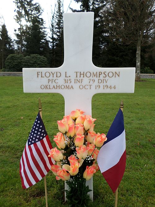 Pfc Floyd L. Thompson enlisted in Oklahoma City, Oklahoma on 20 August 1943.He was killed by artillery shell fragments to his stomach.