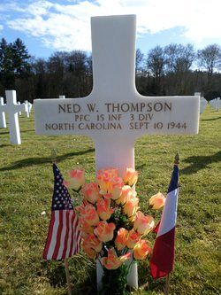 Pfc Ned W. Thompson was a lab man employed by Proximity Mfg Co. in White Oak Cotton Mills.He enlisted at Camp Croft, South Carolina on 21 November 1942 and was sent to North Africa in November, 1943.