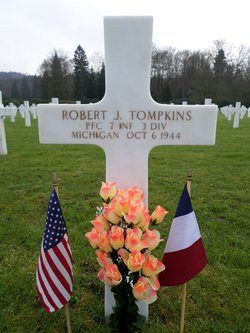 Pfc Robert J. Tompkins graduated from Eastern High School and was a photographic process operator, employed by the Alds Mountain Works Company.He enlisted in Kalamazoo, Michigan on 15 December 1942.