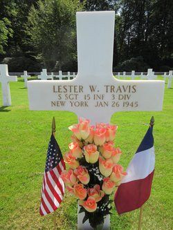 S/Sgt Lester W. Travis attended high school for four years and was a farmhand, employed by George Harrin before he enlisted in Syracuse, New York on 17 January 1941.He first served in B Company, 39th Infantry Regiment of the 9th Infantry Division but probably transferred to the 15th Infantry Regiment in 1943.