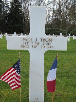 1st Lt Paul J. Tron graduated from Harding High School and worked on the family farm when he joined the National Guard on 15 October 1941.Until October 1942 he was stationed at Waller Airfield in Trinidad. He returned to the United States to attend the Officers Candidate School. For awhile he was stationed at Camp Wheeler, Georgia where he received preparatory training and in December 1942 he started officers training at Fort Benning, Georgia. He commissioned on 25 February 1943 and in March he reported for duty at Camp Perry, Ohio. In September 1943 he was promoted to 1st Lieutenant.