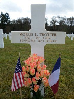 Pfc Morris L. Trotter worked on a family farm before he enlisted at Fort Oglethorpe, Georgia on 6 February 1942 and he arrived in Italy on 5 January 1944.On 14 September 1944 he died of wounds caused by artillery shell fragments in the abdomen and thorax. The exact location is not known.