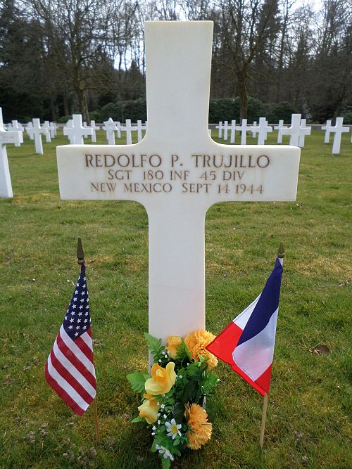 Sgt Redolfo P. Trujillo attended high school for 4 years and worked on a farm before he enlisted in Santa Fe, New Mexico on 10 February 1941.He was first buried at the Temporary American Military Cemetery in Saint-Juan, France.