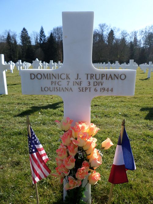 Pfc Dominck J. Trupiano worked in the metal industry before he enlisted in New Orleans, Louisiana on 18 June 1943.He was killed by artillery shell fragments.