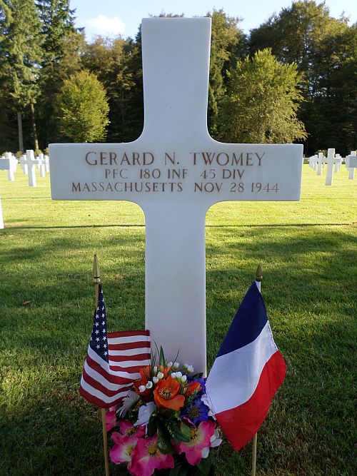 Pfc Gerard N. Twomey attended 1 years of college before he joined the Regular Army in Boston, Massachusetts on 18 May 1943.Source of information: Peter Schouteten, www.abmc.gov, www.wwiimemorial.com – Mavis Twomey Cox, www.archives.gov – WWII Enlistment Record, www.ancestry.com - Headstone and Interment Record / North Family Tree / 1940 Census, http://www.45thdivision.org, www.findagrave.com