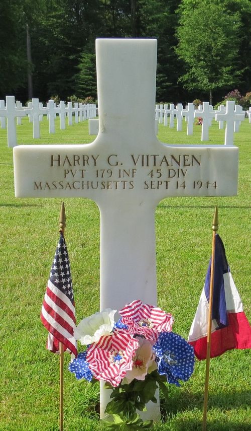 Pvt Harry G. Viitanen attended high school for 4 years before he enlisted in Fort Devens, Massachusetts on 11 June 1943.He was first buried at the Temporary American Military Cemetery in Saint-Juan, France.