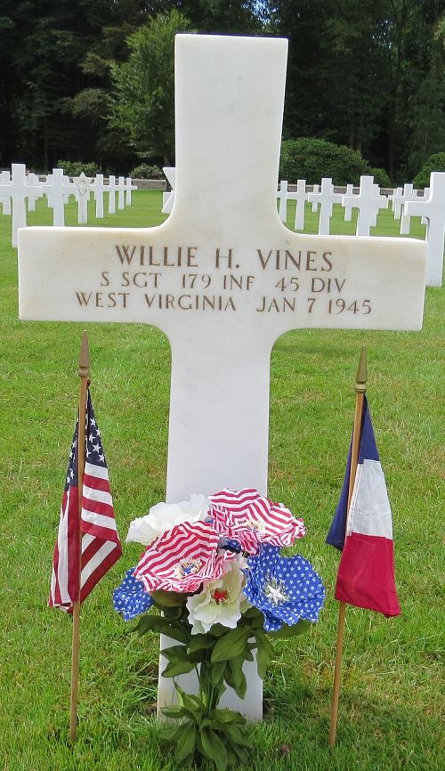 S/Sgt Willie H. Vines enlisted in Fort Benjamin Harrison, Indiana on 19 March 1943.Source of information: Peter Schouteten, www.abmc.gov, www.archives.gov - WWII Enlistment Record, www.ancestry.com - Headstone and Interment Record / 1920 Census / U.S. WWII Draft Cards Young Men, http://www.45thdivision.org