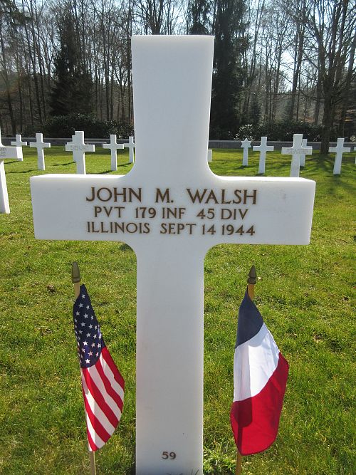 Pvt John M. Walsh attended North Platte High School and was employed at Mars Incorporated in Chicago.He was first buried at the Temporary American Military Cemetery in Saint-Juan, France.