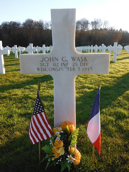 Sgt John G. Wask was a plumber before he enlisted in Milwaukee, Wisconsin on 26 September 1942.Source of information: Peter Schouteten, Terry Hirsch, www.abmc.gov, www.wwiimemorial.com, www.archives.gov - WWII Enlistment Record, www.ancestry.com - Headstone and Interment Record / 1940 Census, www.findagrave.com, WWII Draft Card