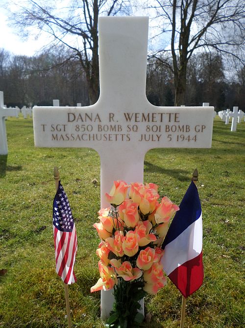 T/Sgt Dana R. Wemette was a general clerk before he joined the Regular Army in Springfield, Massachusetts on 21 March 1941.The aircraft was shot down by an Me-110 night fighter approximately 35 miles south of Paris on the morning of 5 July. It exploded and crashed at 0200hrs at a spot known locally as Les Trois Mares in Lagny-Le-Sec, France.