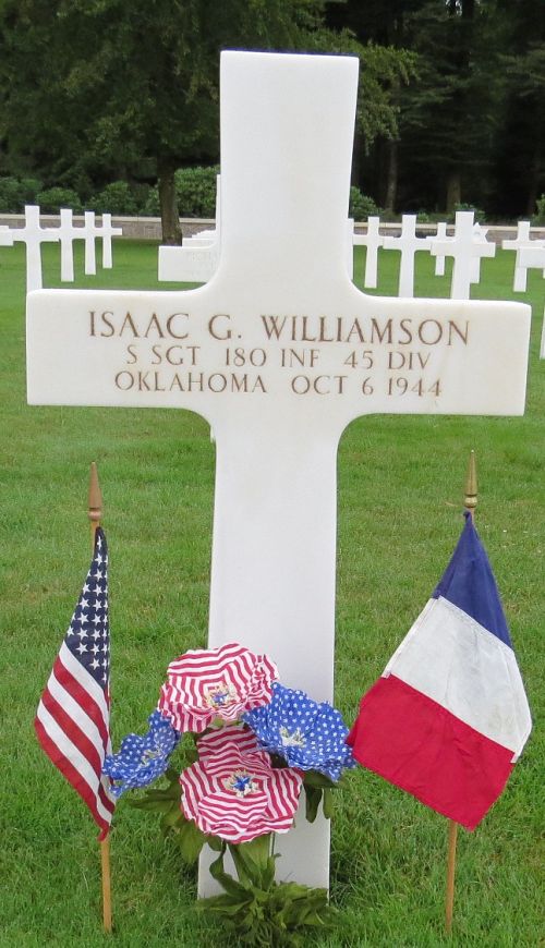 S/Sgt Isaac G. Williamson worked on a farm before he enlisted in Oklahoma City, Oklahoma on 20 April 1943.He was killed in the battle for Hill 422 three quarters of a mile southeast of Fremifontaine against the German 111th Panzer Grenadiers of the 11th Panzer Division. In the heavy fighting around the village of Fremifontaine.