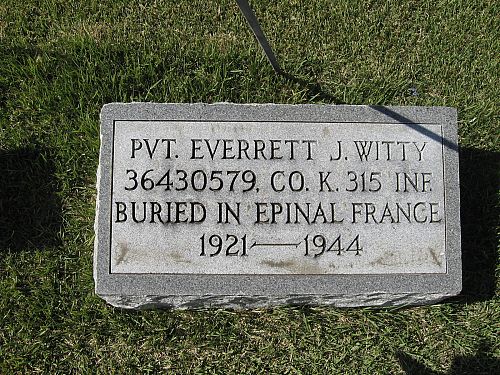 Pfc Everett J. Witty was a mechanic and repairman before he enlisted in Peoria, Illinois on 10 October 1942.He was killed by small arms fire in his stomach.