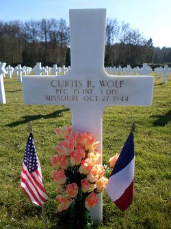 Pfc Curtis R. Wolf was a farmhand before he enlisted at Jefferson Barracks, Missouri on 8 October 1942.He was killed by small arms fire in the thorax.