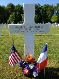 Pfc Joseph Lamonica attended Paterson Vocational School and was a production worker employed by the Watson Flagg Engineering Co. before he enlisted in Newark, New Jersey on 31 July 1943.He was killed by small arms fire in the thorax.