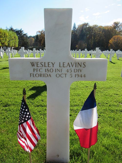 Pfc Wesley Leavins enlisted at Camp Blanding, Florida on 21 February 1941.Source of information: Peter Schouteten, www.abmc.gov, www.wwiimemorial.com, www.archives.gov – WWII Enlistment Record, www.ancestry.com - U.S. WWII Draft Cards Young Men, http://www.45thdivision.org, www.newspapers.com - Pensacola News