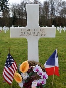 Pvt Homer Lollis enlisted in Camp Joseph T. Robinson, Little Rock, Arkansas on 6 May 1944.Source of information: Peter Schouteten, www.abmc.gov, www.wwiimemorial.com, www.archives.gov - WWII Enlistment Record, www.ancestry.com - Headstone and Interment Record / Stepke Family Tree, http://www.trailblazersww2.org, www.findagrave.com - Herbert Shelly