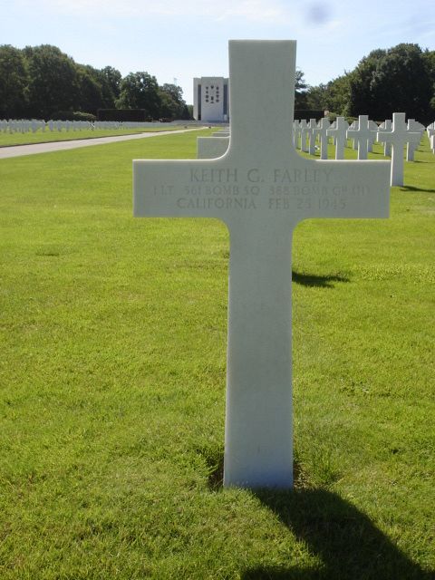 1st Lt Keith G. Farley attended high school for 4 years. He volunteered for the Air Corps of the Army of the United States on 26 January 1943. Before he entered the U.S. Army, he enlisted in the Royal Canadian Air Force.While in the bomb run, just before bombs away, the airplane received a direct flak burst in the right wing. The wing caught fire and a few moments later, the airplane exploded.