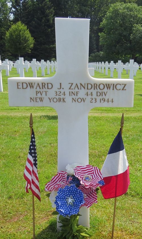 Pvt Edward J. Zandrowicz attended high school for two years and was employed by the Spencer Lens Company before he enlisted at Fort Dix, New Jersey on 21 April 1944. He was sent overseas in October 1944.Source of information: Peter Schouteten, www.abmc.gov, www.wwiimemorial.com, www.archives.gov - WWII Enlistment Record, www.ancestry.com - Headstone and Interment Record / Slowik Family Tree / U.S. WWII Draft Cards Young Men, www.findagrave.com - Russ Pickett