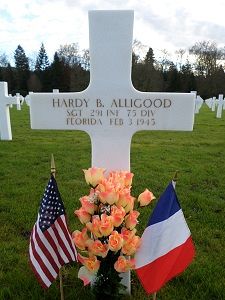 Sgt Hardy B. Alligood enlisted in Camp Blanding, Florida on 12 March 1943.Source of information: Peter Schouteten, Terry Hirsch, www.abmc.gov, www.wwiimemorial.com, www.archives.gov – WWII Enlistment Record, www.ancestry.com - Headstone and Interment Record / 1920/1940 Census, http://75thdivisiondad.com, WWII Draft Card
