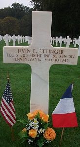 Source of information: Peter Schouteten, Kathy McDermott, www.abmc.gov, www.wwiimemorial.com, www.archives.gov - WWII Enlistment Record, www.ancestry.com - Headstone and Interment Record / Ettinger Family Tree / 1940 Census, www.ww2-airborne.us, www.fold3.com - WWII Draft Card