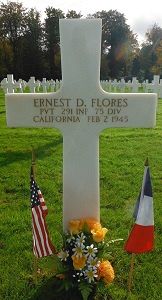 Pvt Ernest D. Flores enlisted in Fort Macarthur San Pedro, California, on 28 April 1944.He attended high school for 4 years and was was employed by Consolidated Aircraft.