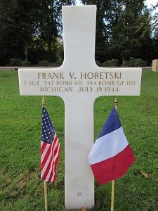 Horetski was killed instantly in the waist of the plane. He was at the right waist window because the ball turret was useless due to a torn-out power cable.